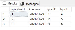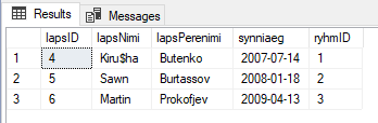 INSERT INTO laps (lapsNimi, lapsPerenimi, synniaeg, ryhmID)