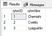 - Таблица ryhm