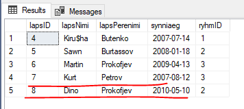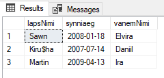 SELECT lapsNimi, synniaeg
