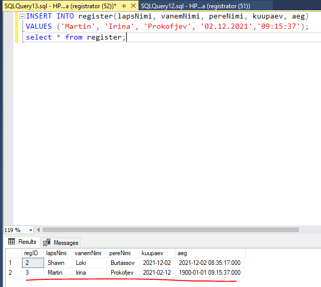 VALUES ('Martin', 'Irina', 'Prokofjev', '02.12.2021','09:15:37');